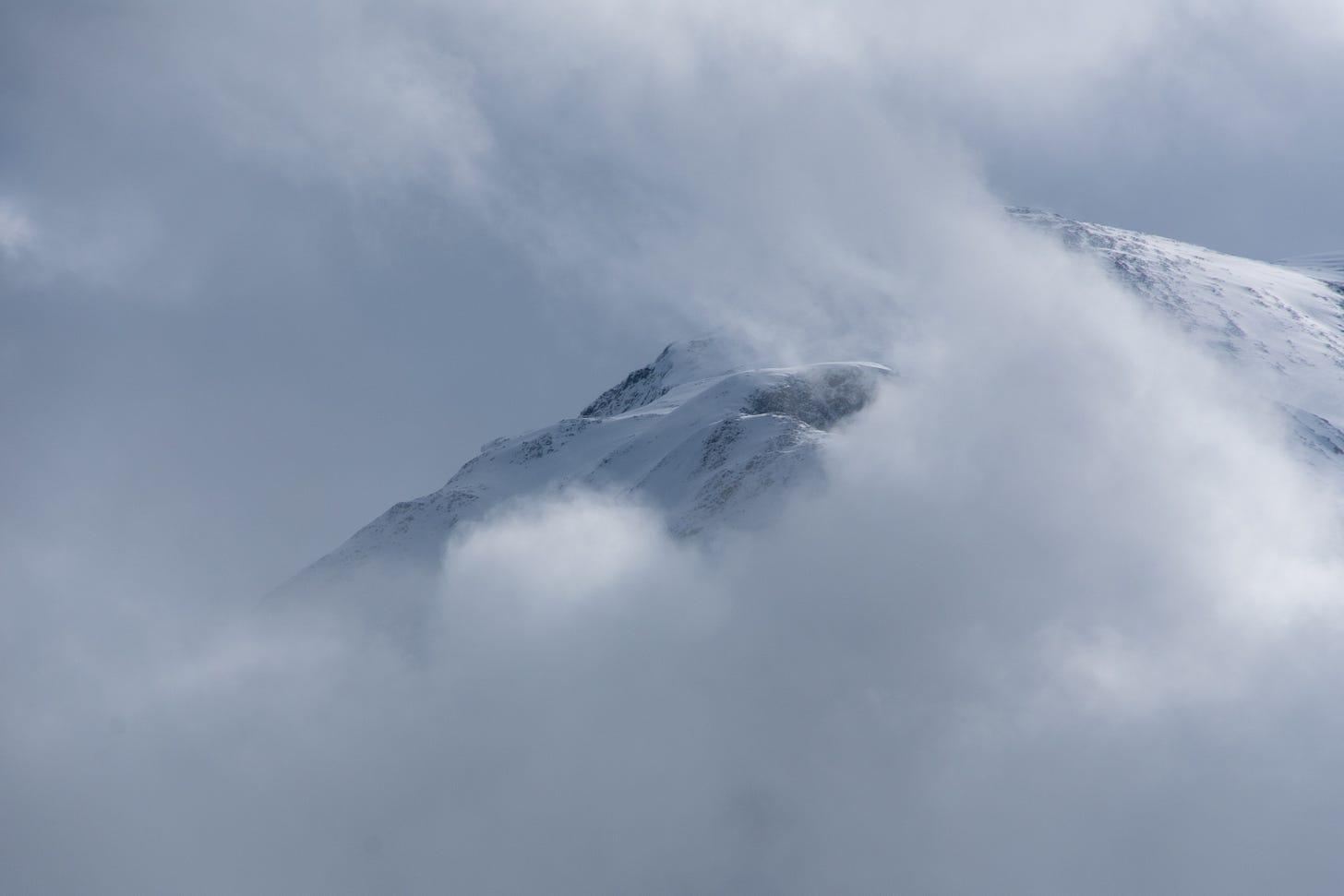 Up there, where it’s quiet but for the whisper, the whoosh, the howl of the wind. Wind that swirls in all directions, cresting snow-covered glaciers, pulling clouds into a dance of air and current.