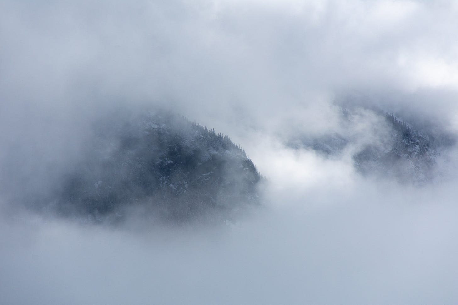 It’s a time I often shift my gaze upward. Off the messy forest floor, away from the in-between and uneven period of not full winter and not yet spring. It’s a time I turn to the mountains, to the clouds, to the greys and blues where earth meets sky.