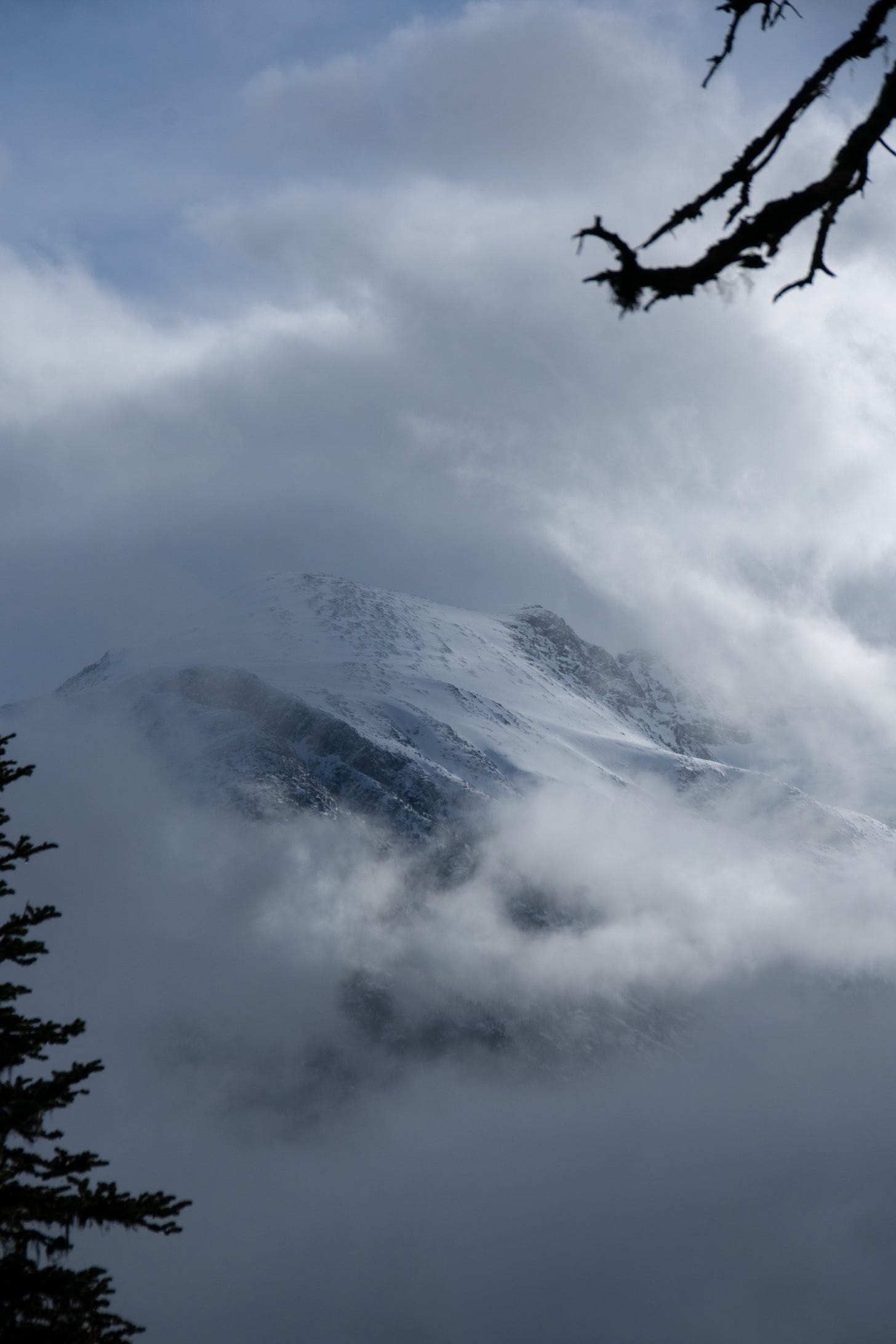 Along this stage of mountains, the clouds and wind play. Revealing, hiding, lifting and dropping. Telling a story of wild things and untouched lands.